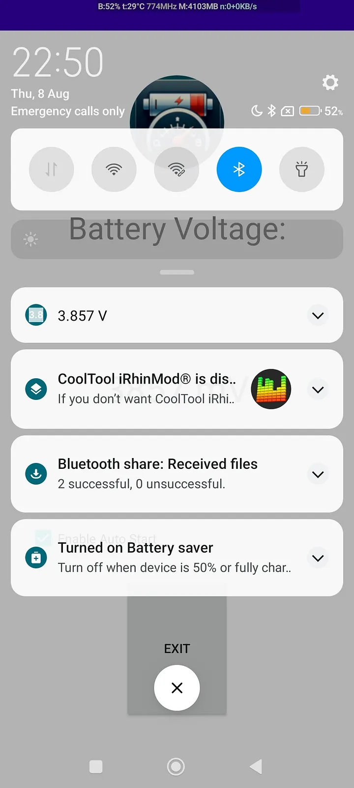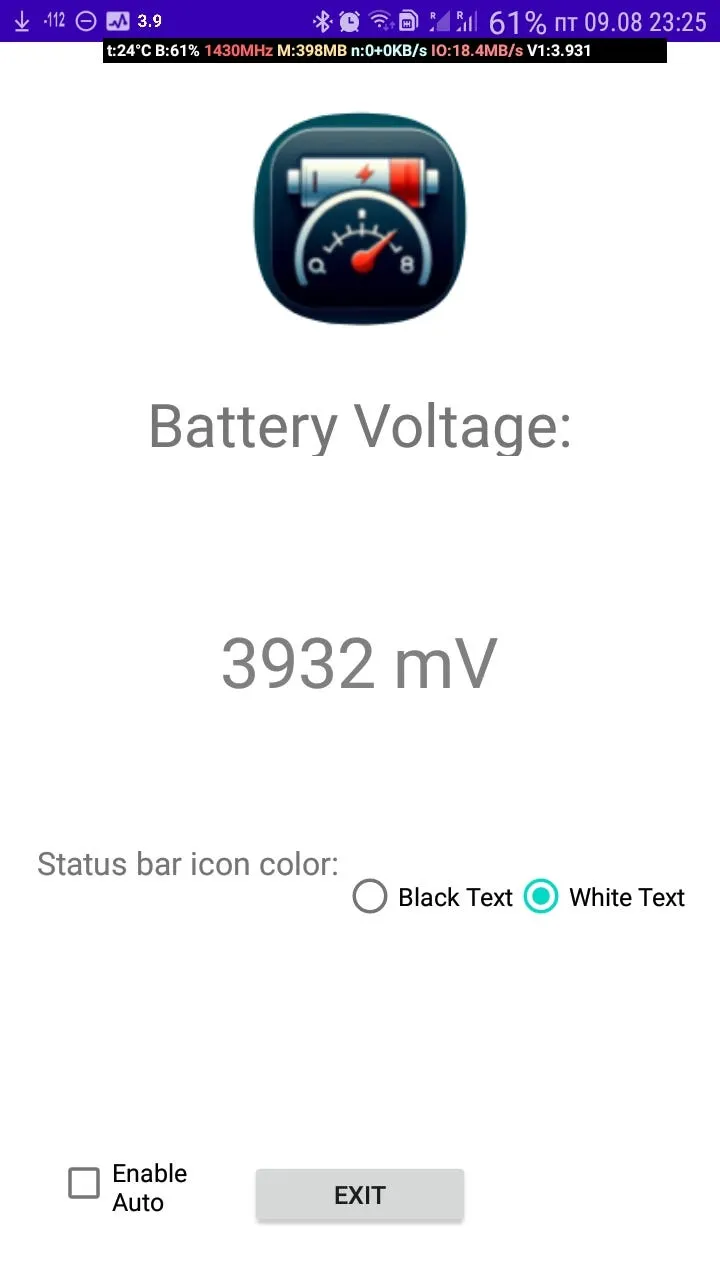 The app’s main advantage lies in its real-time voltage monitoring, always in view. It displays battery voltage directly in the notification icon at the top of the screen. This dynamic icon updates continuously and remains visible across nearly all apps, ensuring you can monitor battery voltage without switching screens or opening the app.